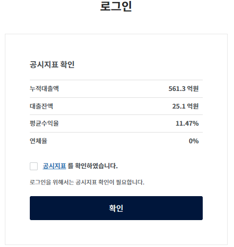 언제 로그인 하더라도 같은 수치가 뜬다. (실시간으로 바뀌는 수치가 아니라는 점이 이상하기에 투자에 신중할 필요가 있다는걸 다시금 언급한다.)