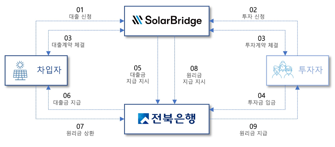 솔라브릿지와 차입자간에 대출계약을 하면 전북은행에서 대출금을 지급하는 구조이다.