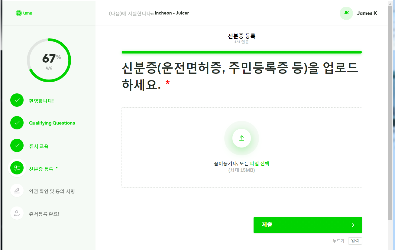 교육과정은 그냥 패스되고 바로 신분증 업로드 하는 단계로 넘어가네요