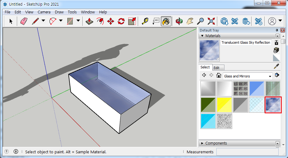 Materials >> Glass를 적용해주지 투명한 천정 안에 공간이 생겼다.
