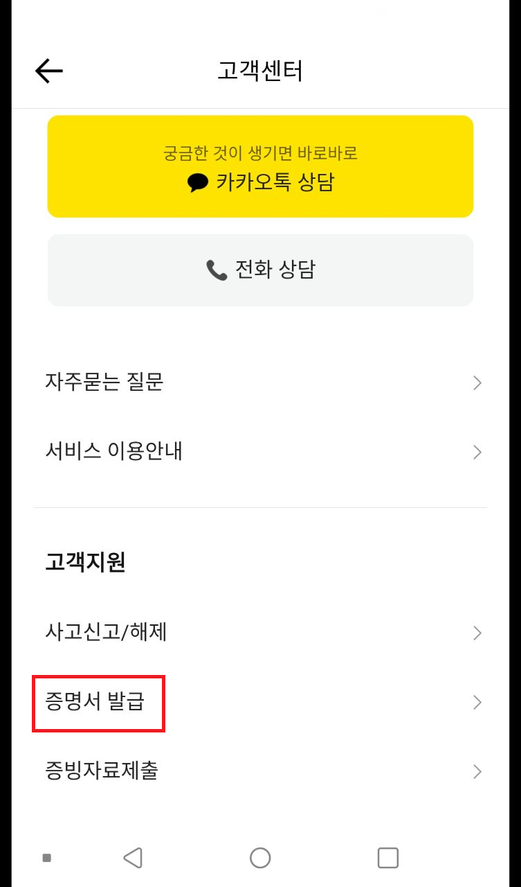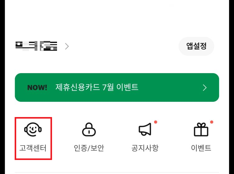 고객센터를 눌러줍니다.