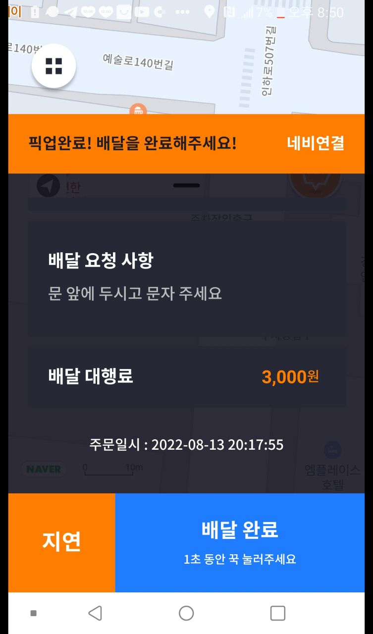 콜이 잡히면 폰에서 벨소리가 엄청 시끄럽게 들려서 소리를 못듣고 놓치는 불상사는 없습니다.