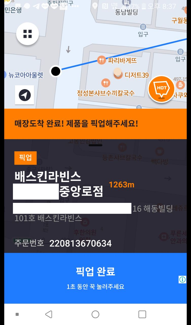 매장 도착후 픽업완료 버튼을 누르면 됩니다.