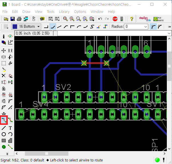 이렇게 그려놓고, 위의 첫번째 그림인 PCB부분에서 부품을 배치시키면 자동으로 Router가 걸립니다.