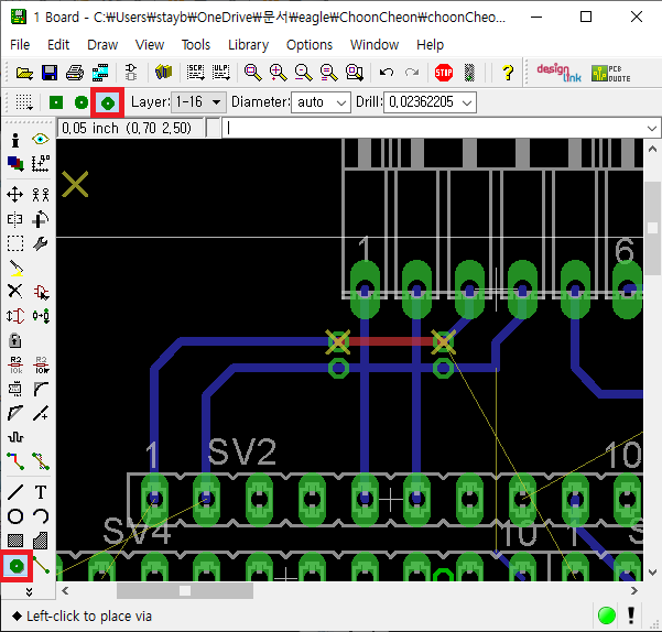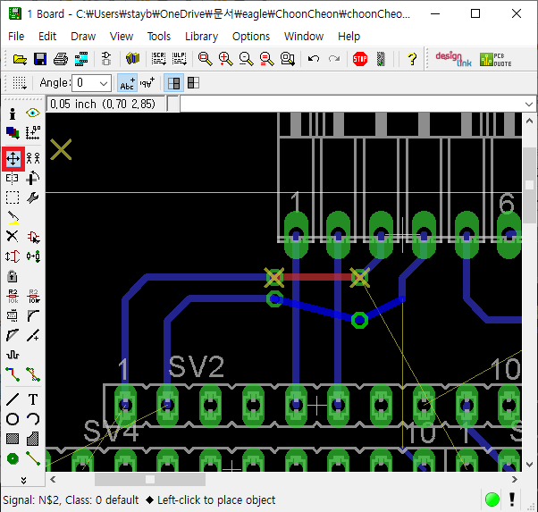 3.Move툴을 이용해 Via hole이 제대로 연결됬는지 살짝 움직여본다.
