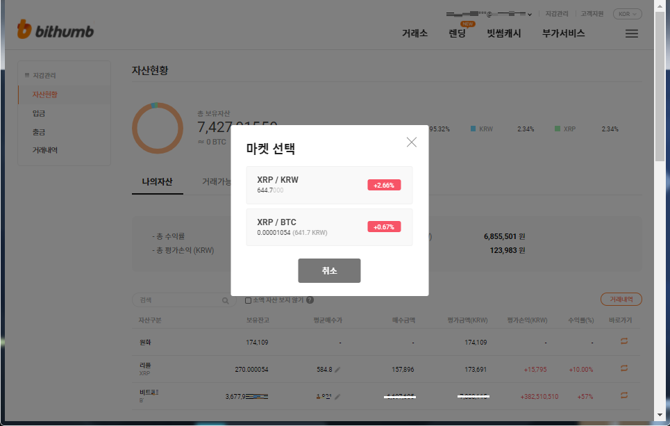 BTC마켓에서 매수한 XRP를 KRW마켓에서 매도하여 원화로 바꾸는게 안됨 X