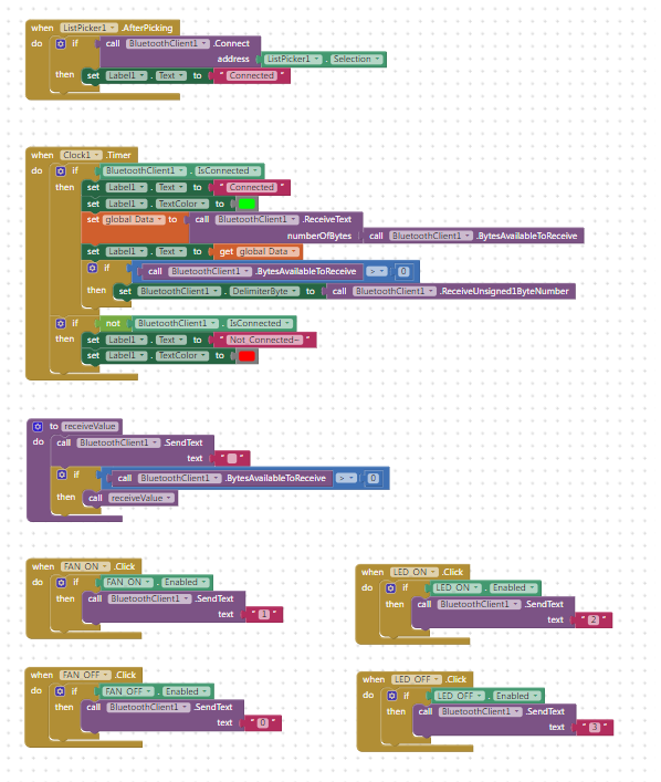 Designer패널에서 버튼을 배치한후, Blocks패널로 넘어와서 When???.Click~~~do 클립을 배치후