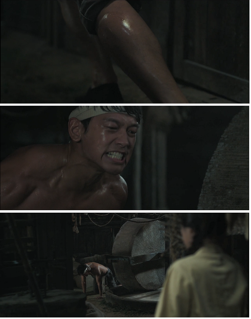▼몰래 레이싱하다가 이범수한테 걸려서 뉘우치는 차원에서 야밤에 멧돌을 굴리는 정지훈