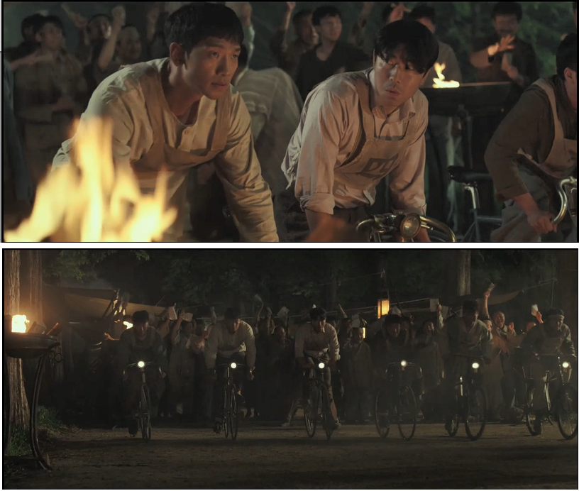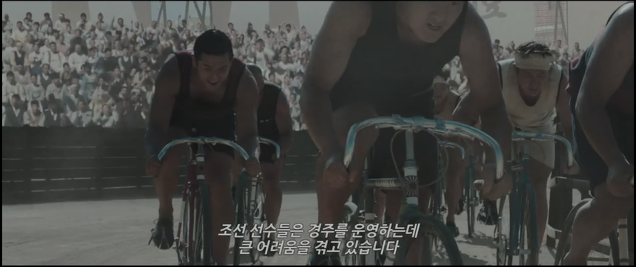 자전거는 먼지에 휩싸여서 뿌옇게 보이는데, 정지훈은 너무 선명하다.