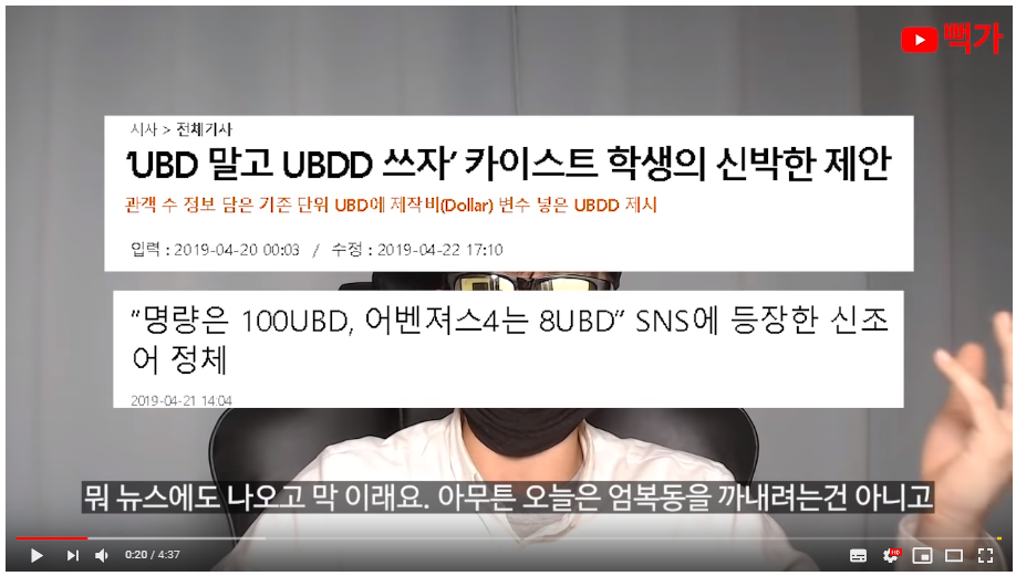 카이스트 학생이 제한한 단위로 1UBD는 엄복동 영화의 관색지수를 말한다.
