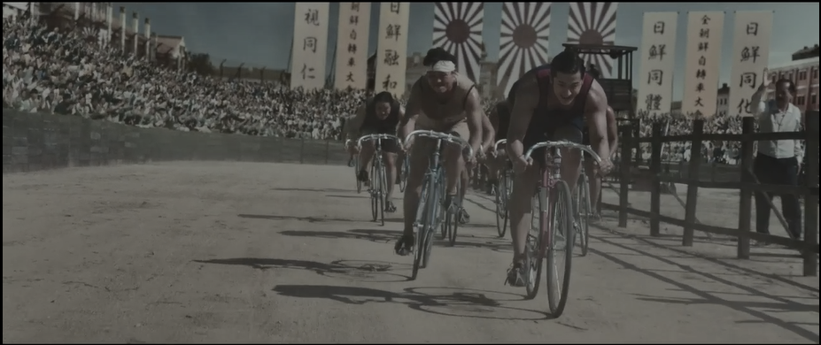 ▼윤봉길의 도시락폭탄 투척을 패러디한 자전거 투척 (이것도 비싼 CG)