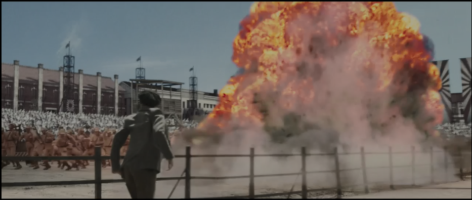 ▲경기장 폭발물 투척씬, 나름 비싼 CG중 하나이다.