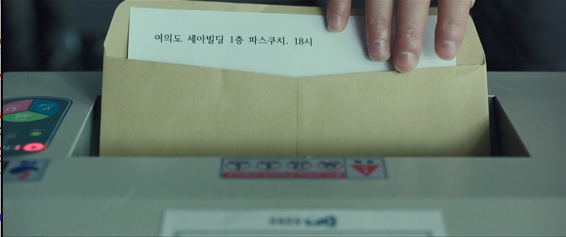 ▼번호표와의 만남을 제안하는 선배, 만날장소를 알려주고 서류는 바로 파쇄기에 꽂아주는 센스~~