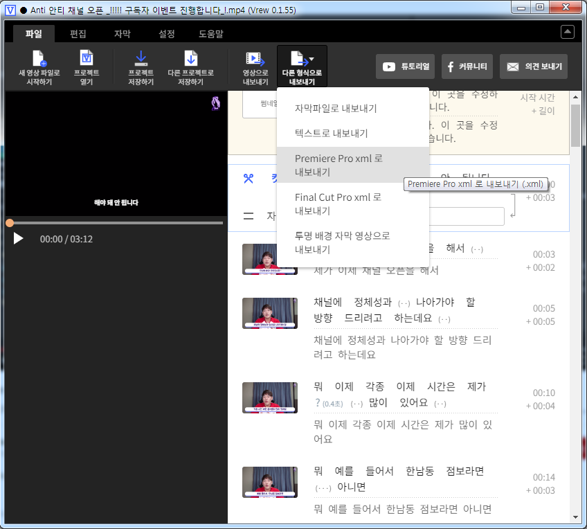 ▼영상으로 내보내기를 하면 자막이 붙은채로 MP4로 전환됩니다.