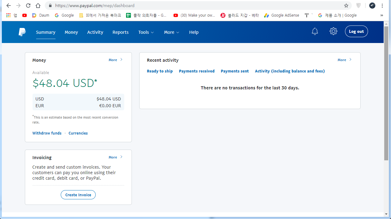 새로운 창을 열어서 Paypal공식 사이트로 들어가서 로그인한다.