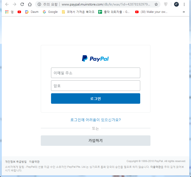 ▼아래처럼 공식 Paypal처럼 보이는 로그인 창이 뜬다.