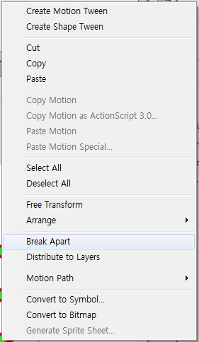 ▼아래 객체만 선택후 우클릭하고 Break Apart를 해준다.