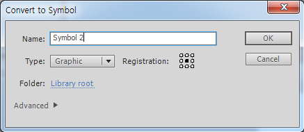 그림을 일단 그린후 F8을 누른후 Symbol화 시킨다. (이때 MovieClip 선택)