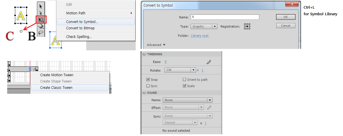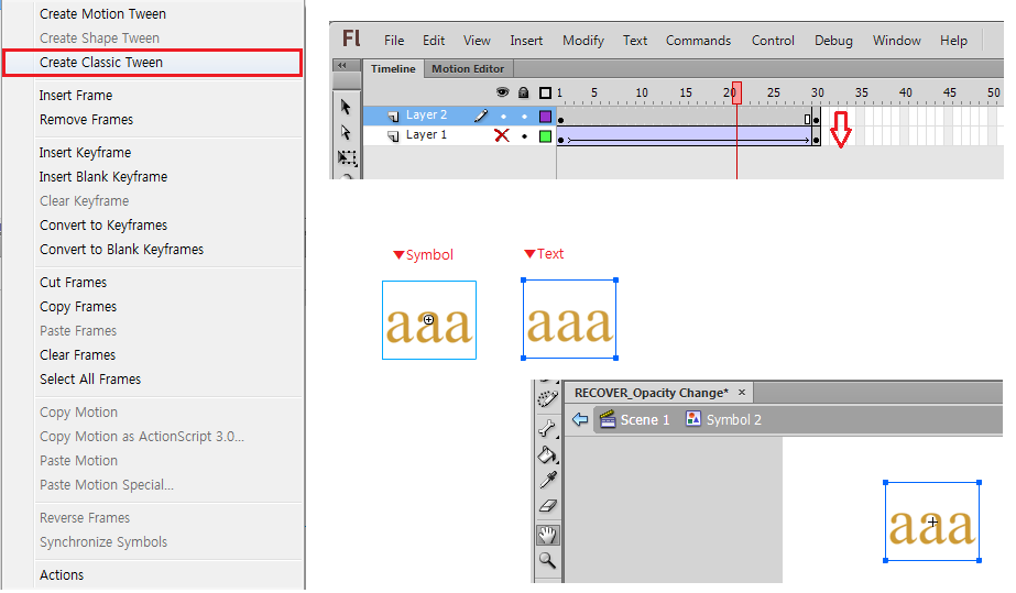 (Symbol을 Tween시킬때 Classic Tween을 해준다.)
