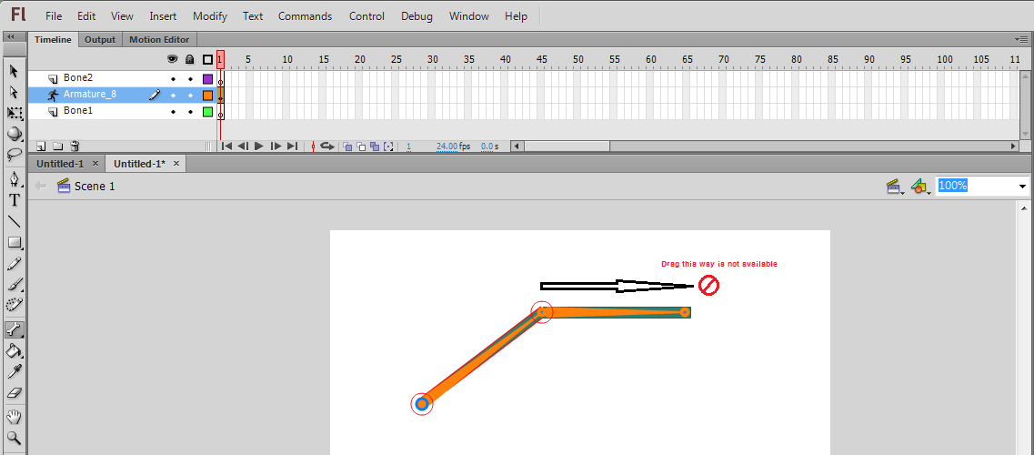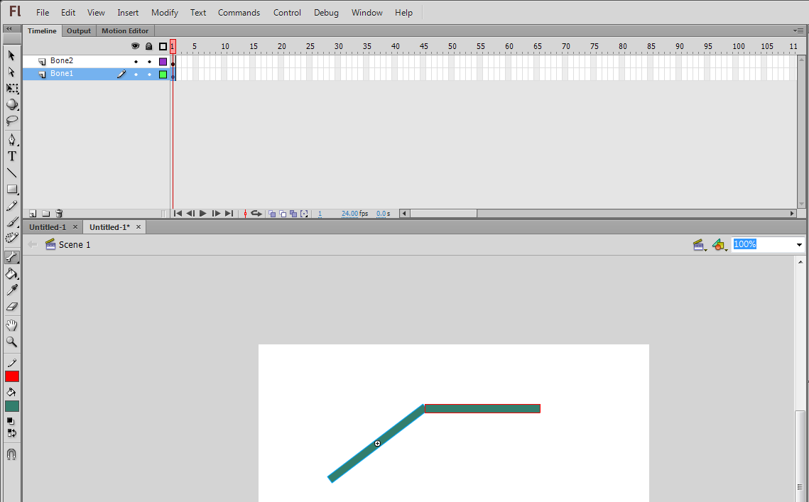 Bone Tool을 선택하고 뼈대를 만들어주고자 하는 객체 바로위에서 Drag해주면 된다.