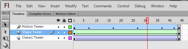 Motion Tween :: 파란색으로 표시됨 :: 디테일한 모션 및 형변환이 가능하다.