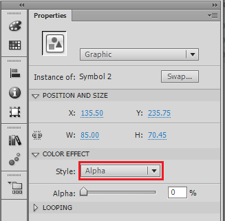 아래 그림처럼 Style에서 Alpha값을 바꿔주면 투명도가 조절된다. (서서히 사라지게하는 효과를 낼수있다.)