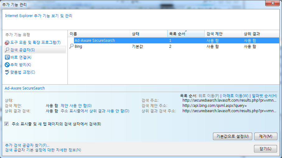 4.검색한다. for P187425.CLKSITE.COM 혹은 다른 의심스런 Add-Ons를.